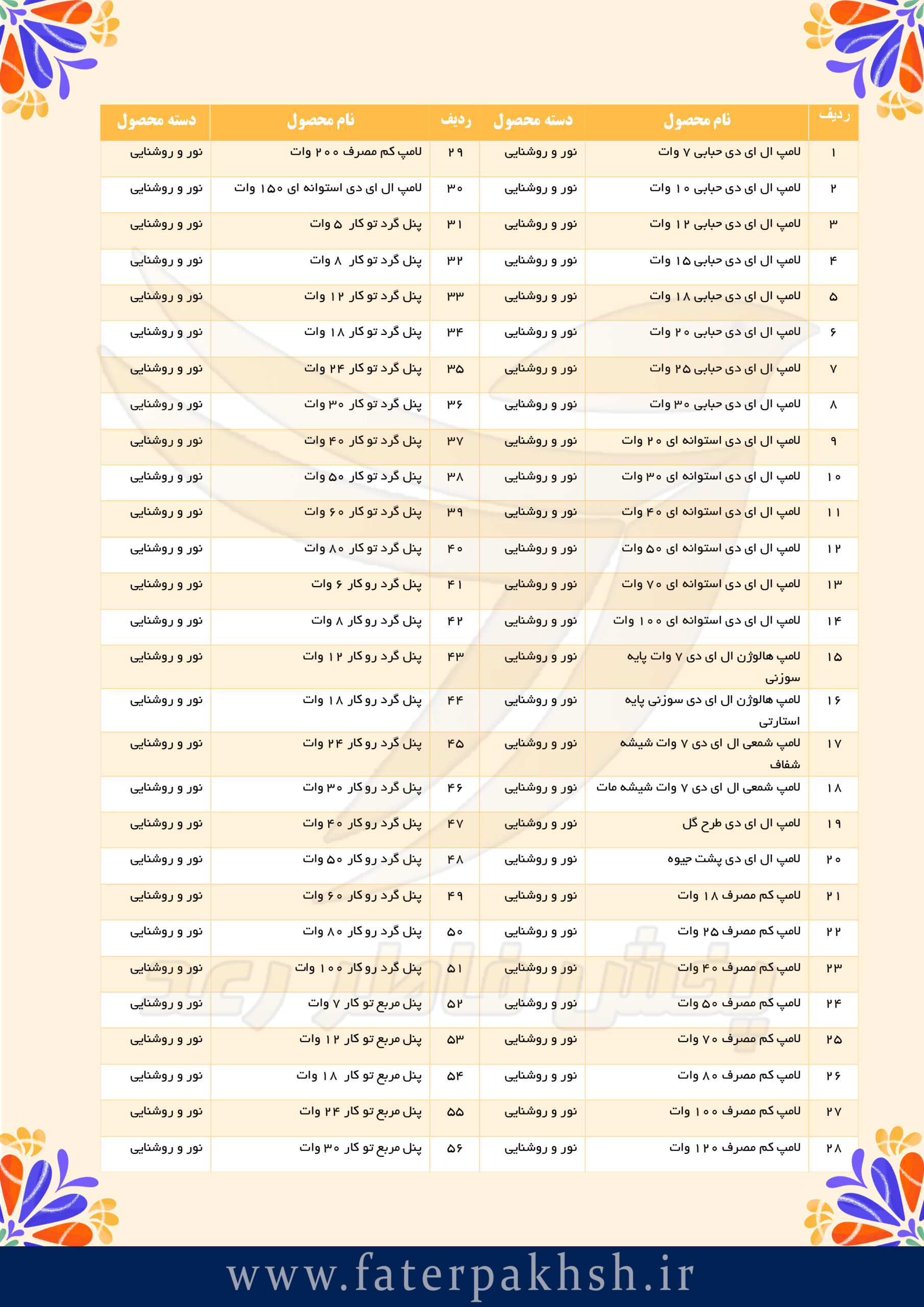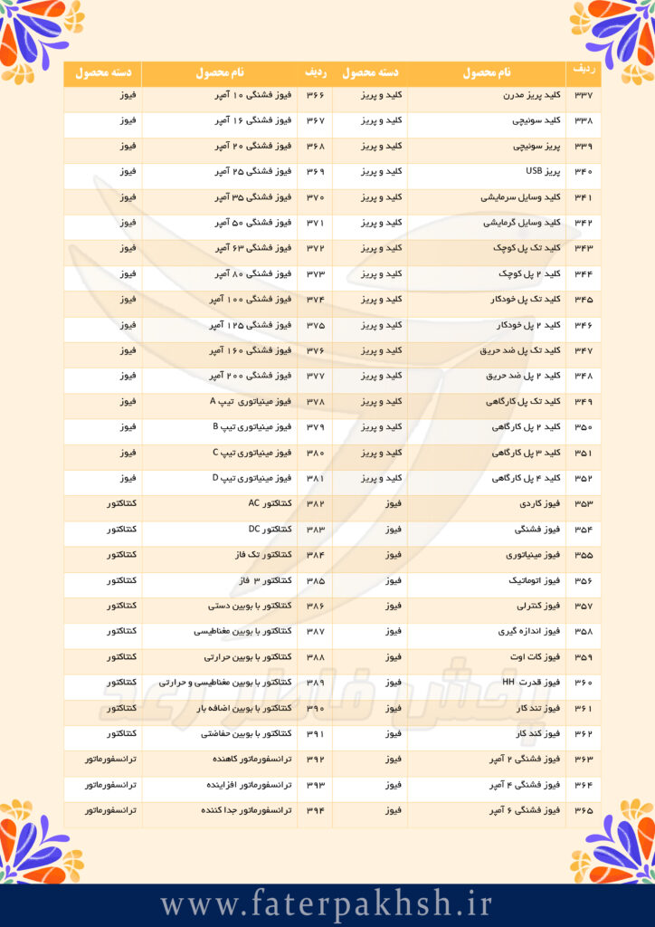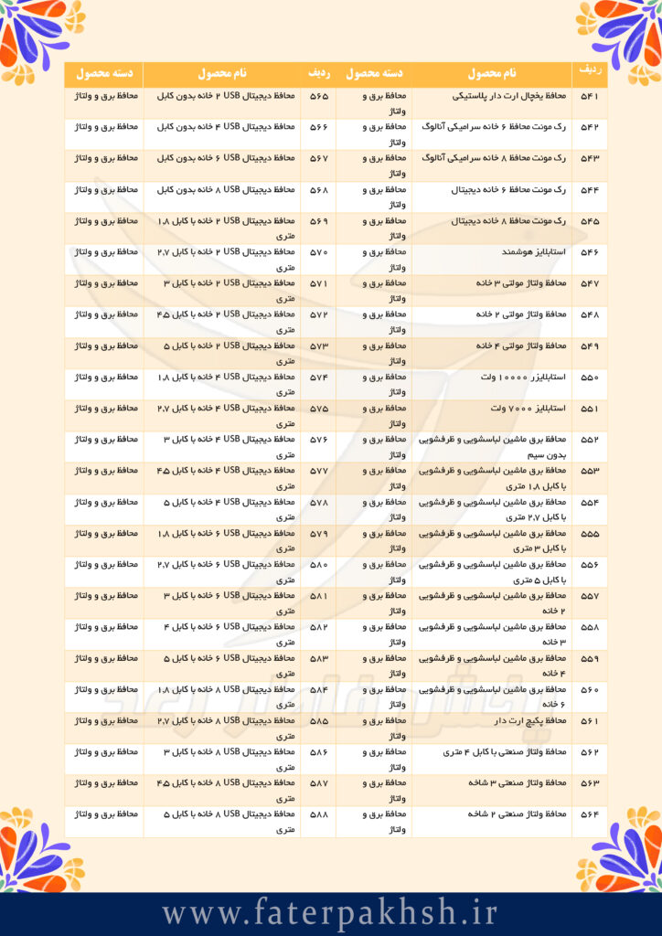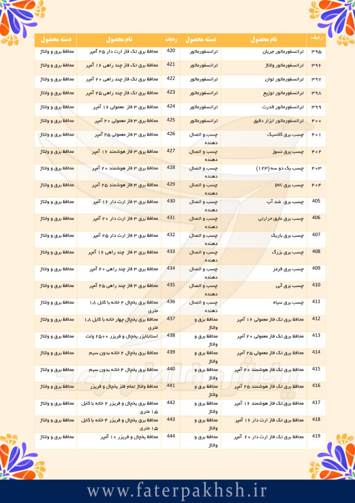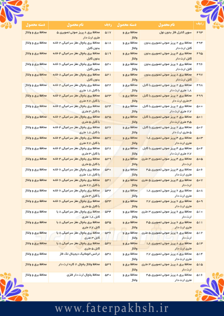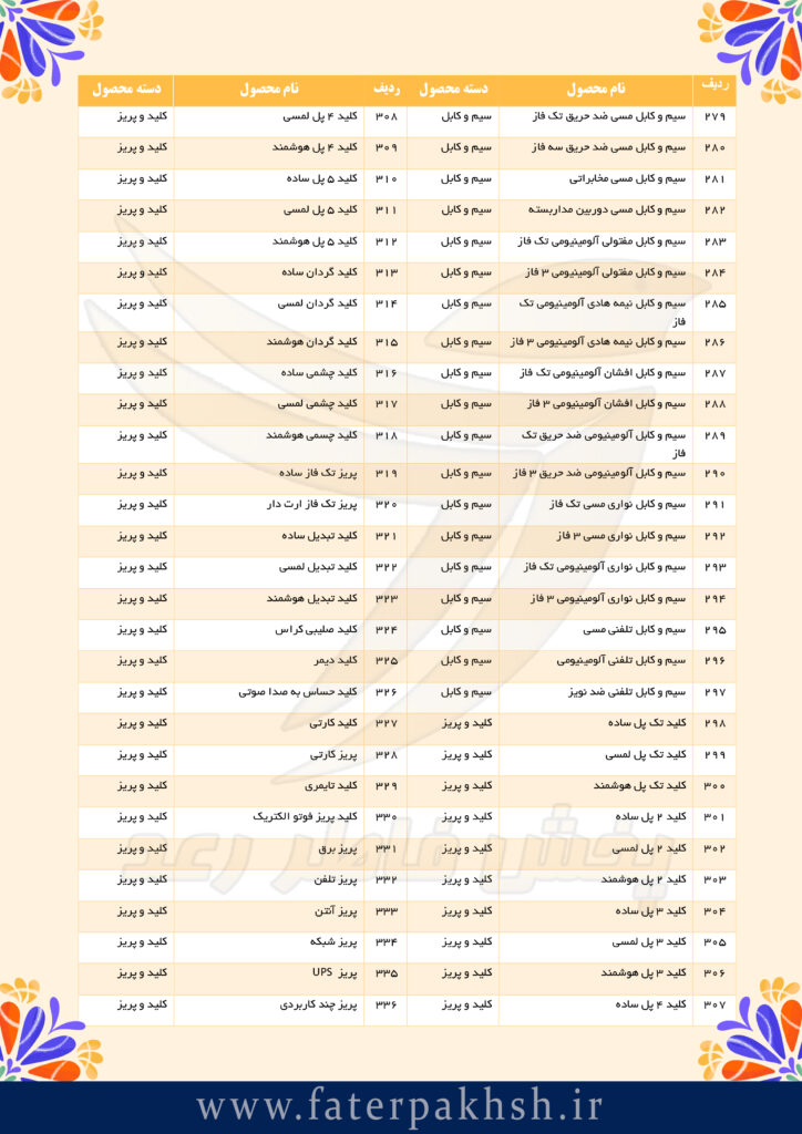 PDF لیست کامل ملزومات الکتریکی را از دکمه زیر دانلود کنید.