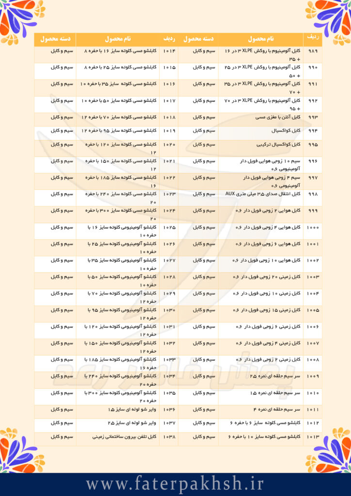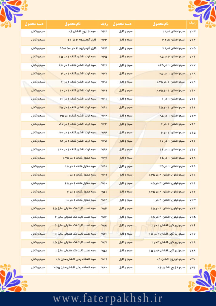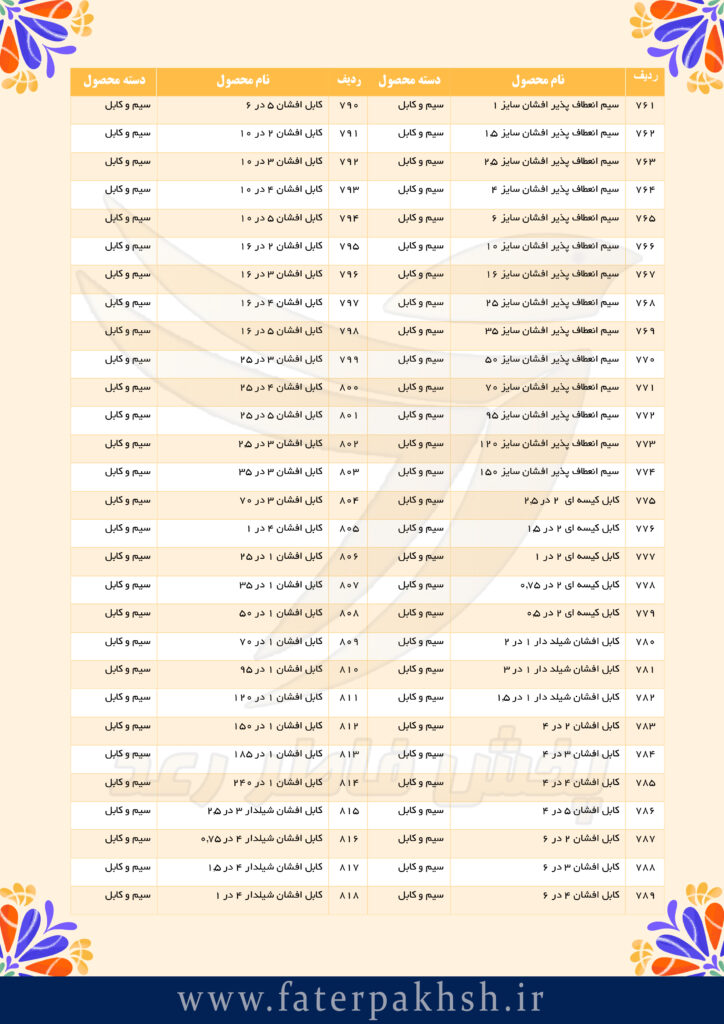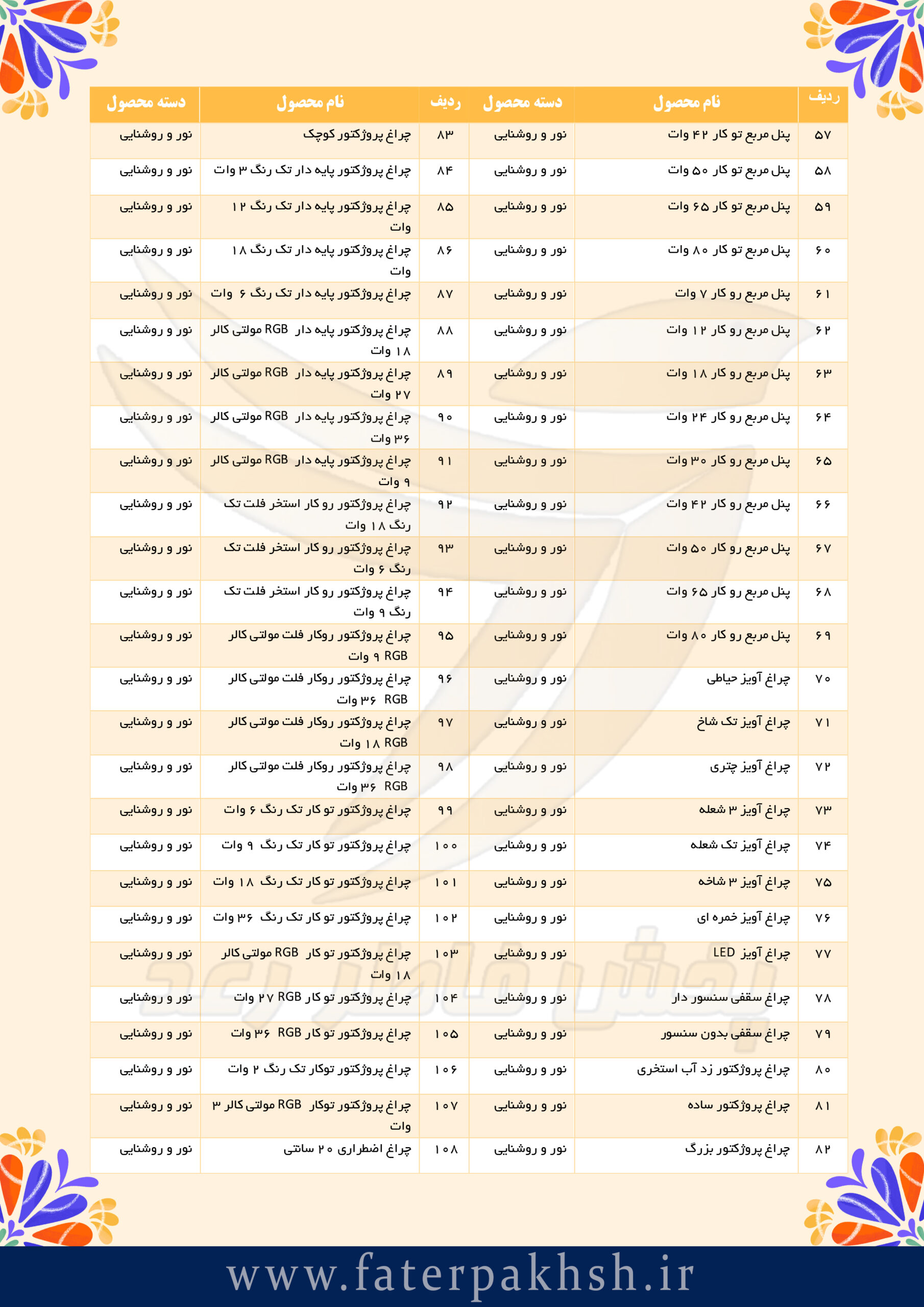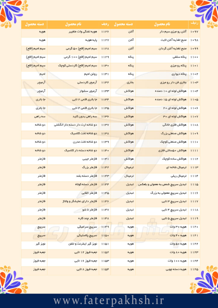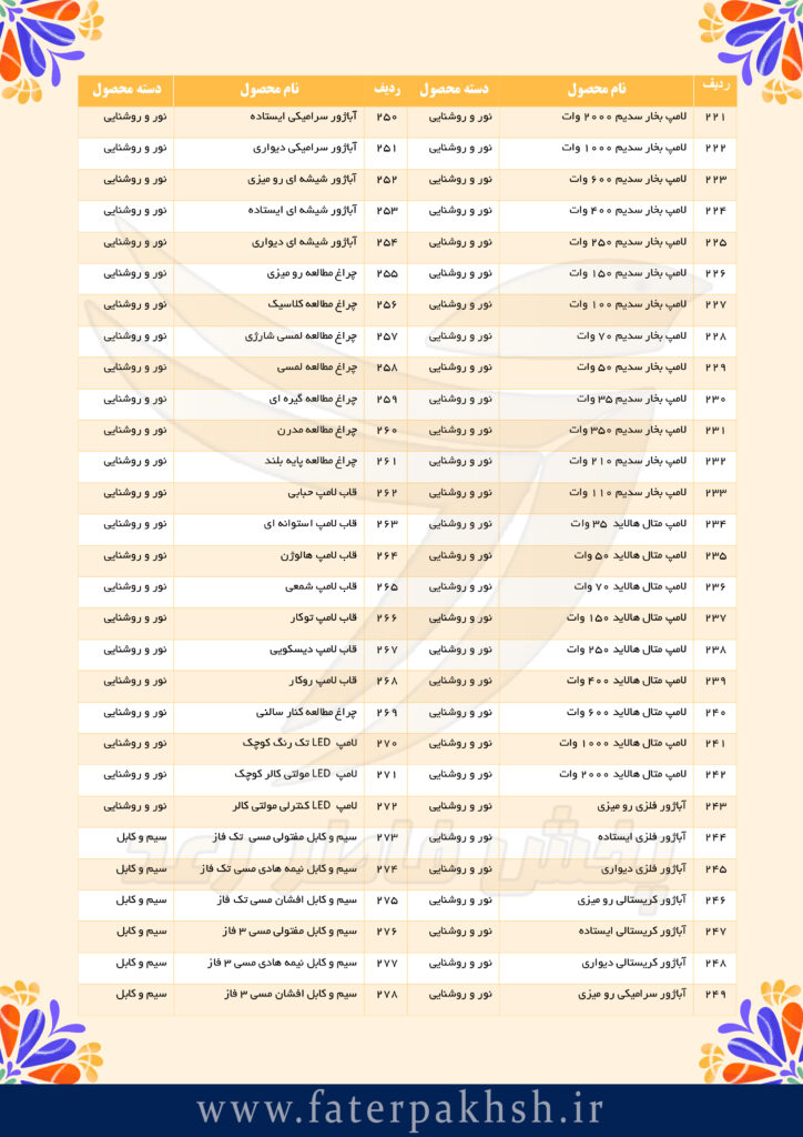 PDF لیست کامل ملزومات الکتریکی را از دکمه زیر دانلود کنید.