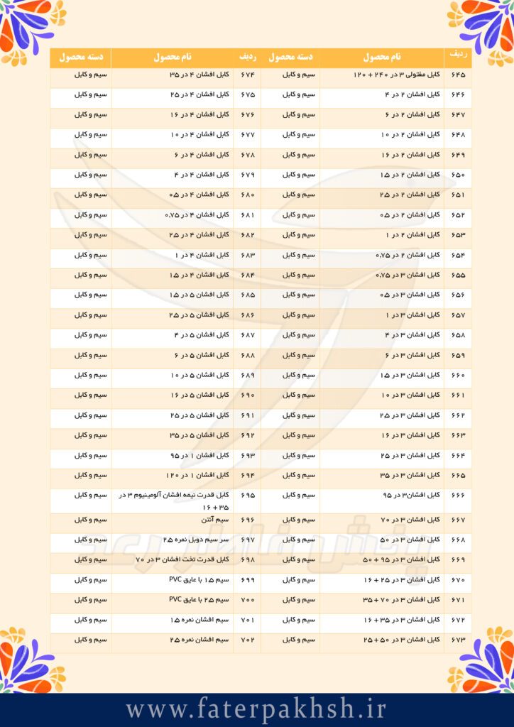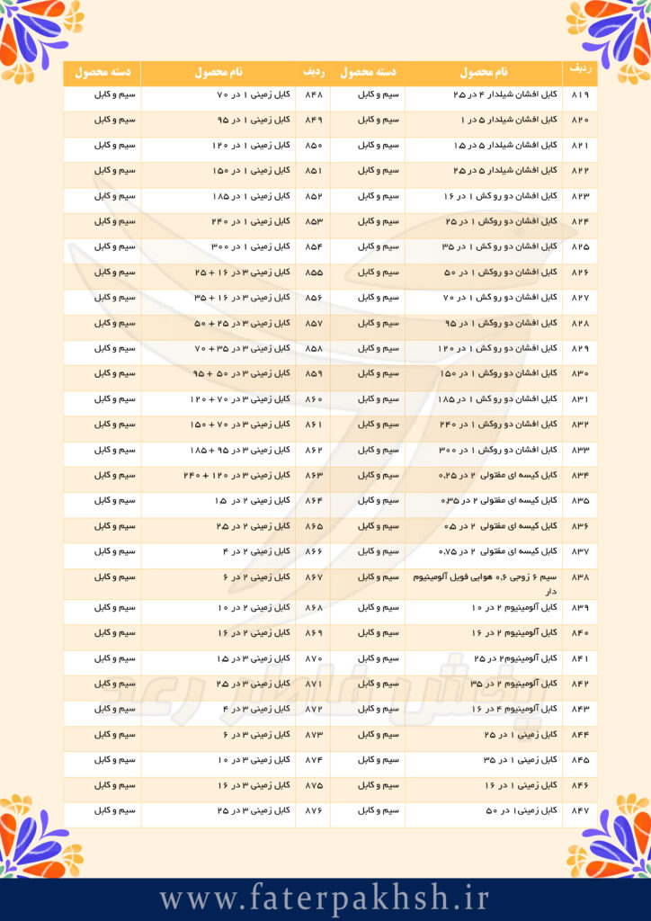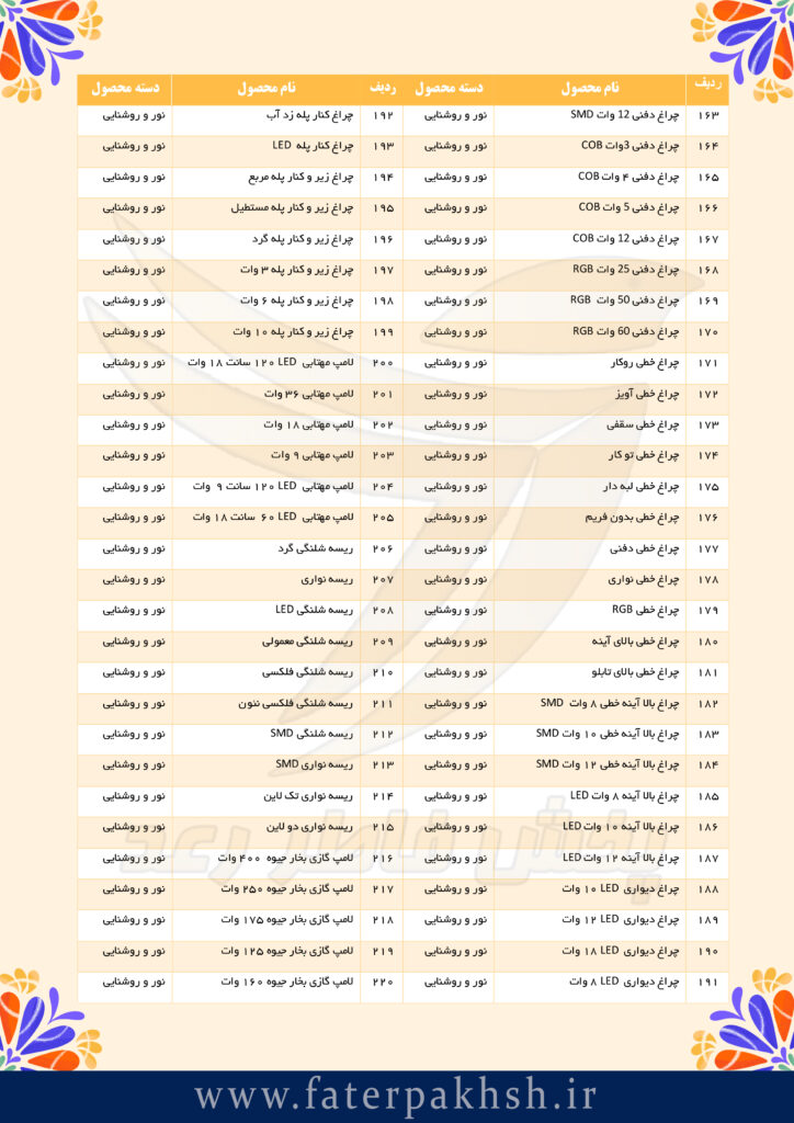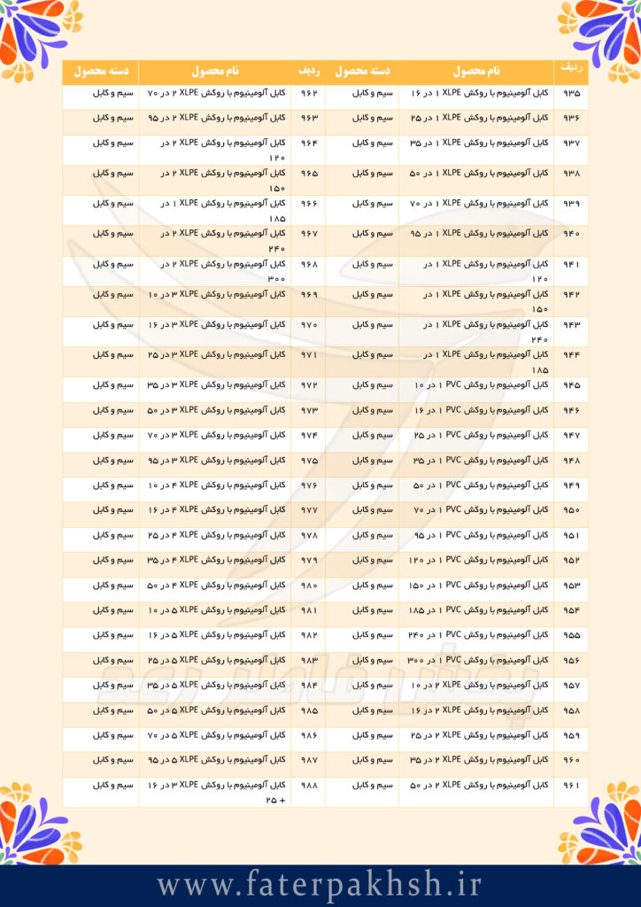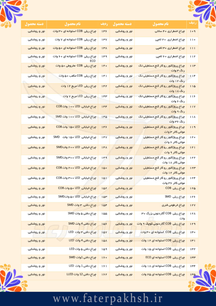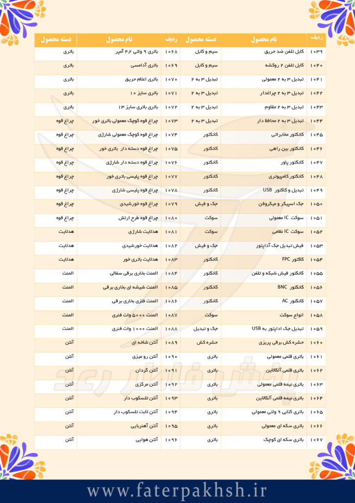 PDF لیست کامل ملزومات الکتریکی را از دکمه زیر دانلود کنید.
